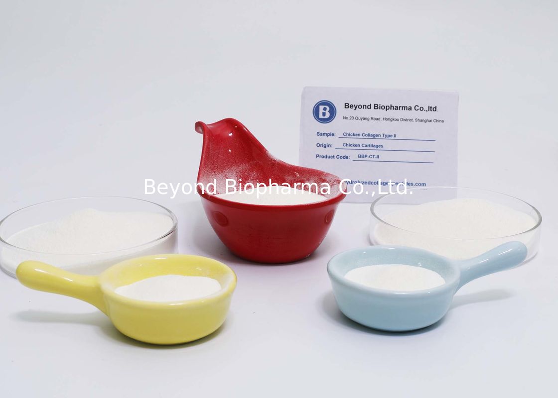 Comme fabricant de type collagène d'II, nous au delà de Biopharma non seulement capable fournir le collagène de poulet sous la forme de poudre, mais également en forme granulaire. Le collagène granulé a une bonne fluidité de sorte qu'il puisse être facilement produit dans les boissons solides dans des sachets ou des boîtes. Type - le collagène de 2 poulets peut également être facilement comprimé dans des comprimés ou être versé dans des capsules.